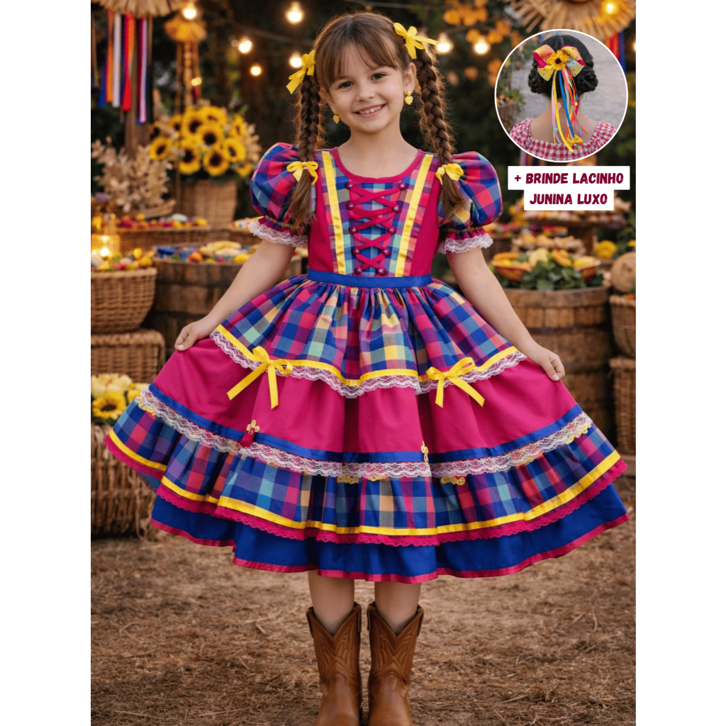 🎉 Vestido de Festa Junina Super Luxo Costura Reforçada – Edição Especial 🎉 ✨ Acompanha BRINDE: Presilha Lacinho Junino Luxo (modelo aleatório) ✨ Encante na festa junina com um vestido super luxuoso, colorido e cheio de detalhes! Esse modelo foi desenvolvido para quem busca qualidade e beleza, perfeito para quadrilhas, apresentações escolares, festas juninas e sessões de fotos temáticas. 💖 Destaques do Produto ✔ Modelo SUPER LUXO – acabamento caprichado e visual encantador ✔ Costura reforçada – mais resistência e durabilidade ✔ Saia rodada com várias camadas que dão volume e movimento ✔ Rico em detalhes: rendas, fitas, laços e estampas típicas juninas ✔ Tecido confortável e de alta qualidade ✔ Perfeito para festas juninas, arraiais e apresentações escolares 🎁 BRINDE ESPECIAL Ao comprar este vestido, você recebe GRÁTIS uma Presilha Lacinho Junino Luxo 🎀 * Presilha temática de festa junina * Ideal para combinar com o vestido * Modelo enviado de forma aleatória * Deixa o look ainda mais completo e encantador 📏 Tamanhos Disponíveis Disponível do Tamanho 4 ao 16 🎨 Estampas Disponíveis Este modelo possui 5 lindas estampas diferentes, todas coloridas e no estilo tradicional junino. 👗 Perfeito para: 🌽 Festa Junina 🎶 Quadrilha escolar 📸 Ensaios fotográficos 🎉 Arraiás e eventos temáticos 🏫 Apresentações escolares 💡 Dica: Esse vestido possui ótimo caimento e bastante volume, deixando o visual ainda mais bonito nas apresentações e fotos. ⚠ Atenção: * O lacinho junino é um brinde, enviado em modelo aleatório conforme disponibilidade. ✨ Garanta agora esse lindo Vestido de Festa Junina Super Luxo e deixe o arraial ainda mais especial!
