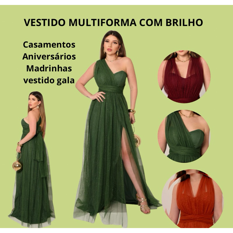 Vestido de Festa Versátil Multiformas Sofisticado Glamour Tendência Moda Festa| Madrinha, Casamento, Formatura, Longo