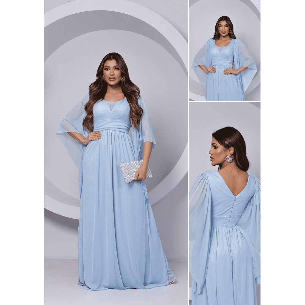Vestido de Manga Longa de Tule Ideal Para Festas Corporativas e Casamentos Com Manga Longa