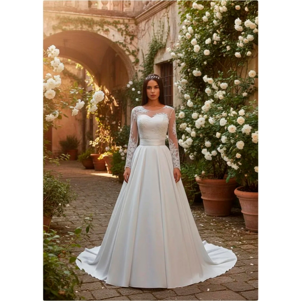 Vestido De Noiva Casamento Renda sem Brilho com cauda