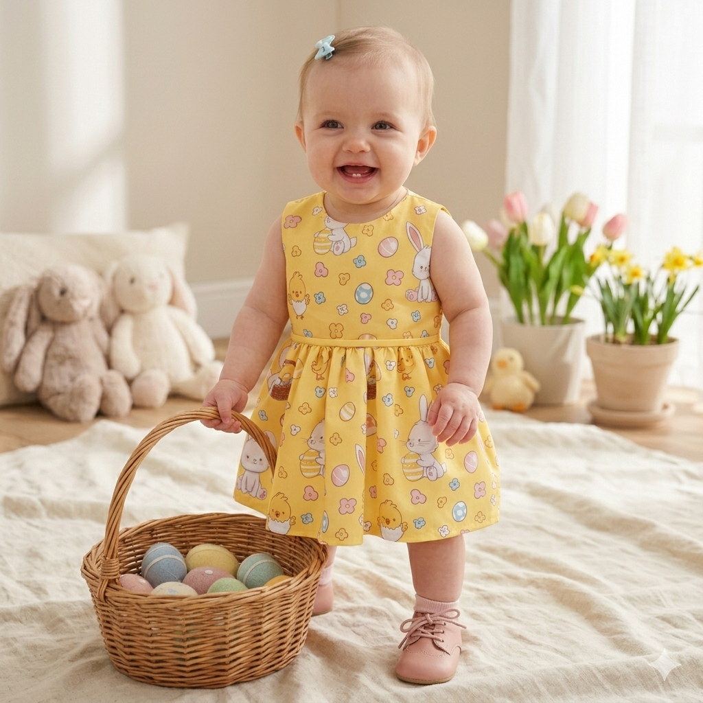 Vestido de Páscoa Para Ensaio Fotográfico Bebê Infantil Menina Coelho 01 Peça