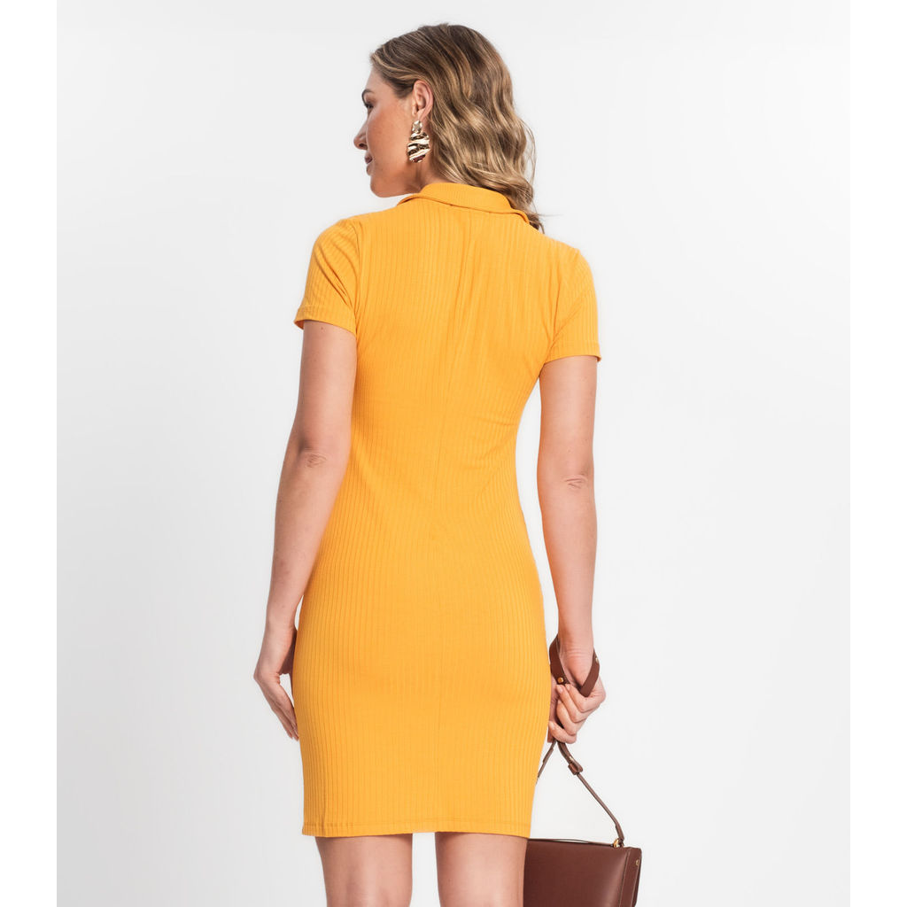 Vestido De Ribana Canelado Feminino Endless Amarelo