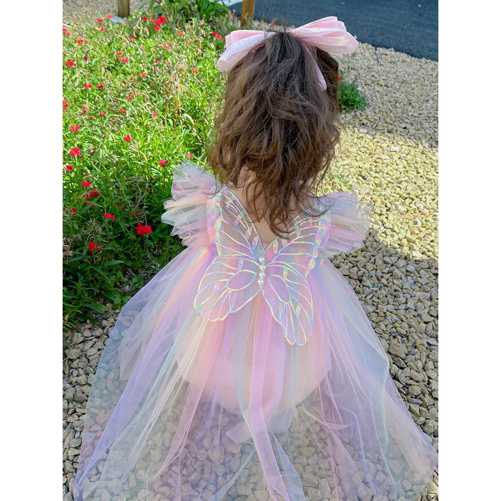 Vestido De Verão Para Meninas Com Estrelas Cintilantes Tule Sem Mangas 1-5 Anos