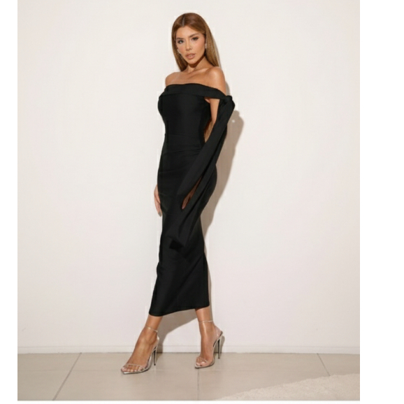 Vestido midi sofisticado em tom clássico, desenvolvido para valorizar a silhueta com elegância e modernidade. Possui modelagem ajustada ao corpo, proporcionando um caimento impecável e confortável. O decote ombro a ombro destaca o colo de forma delicada e feminina, enquanto a faixa longa aplicada em um dos lados acrescenta charme, movimento e um toque contemporâneo ao design. Confeccionado em tecido PDA encorpado de alta qualidade, o vestido transmite requinte e presença, sendo ideal para DIVERSOS eventos noturnos, festas, jantares especiais e ocasiões formais. Atemporal e versátil, é uma peça-chave para mulheres que buscam um visual elegante, marcante e cheio de estilo.