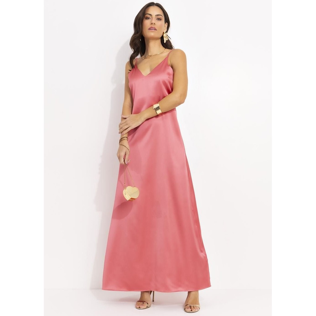 Vestido rosé, slip dress uma peça clássica e sofisticada que exala elegância e feminilidade. Feito de tecido acetinado, este vestido oferece um brilho sutil e um caimento suave, perfeito para diversas ocasiões. Este produto é destinado apenas para consumidores finais (CPF). Não realizamos a venda para CNPJ.
