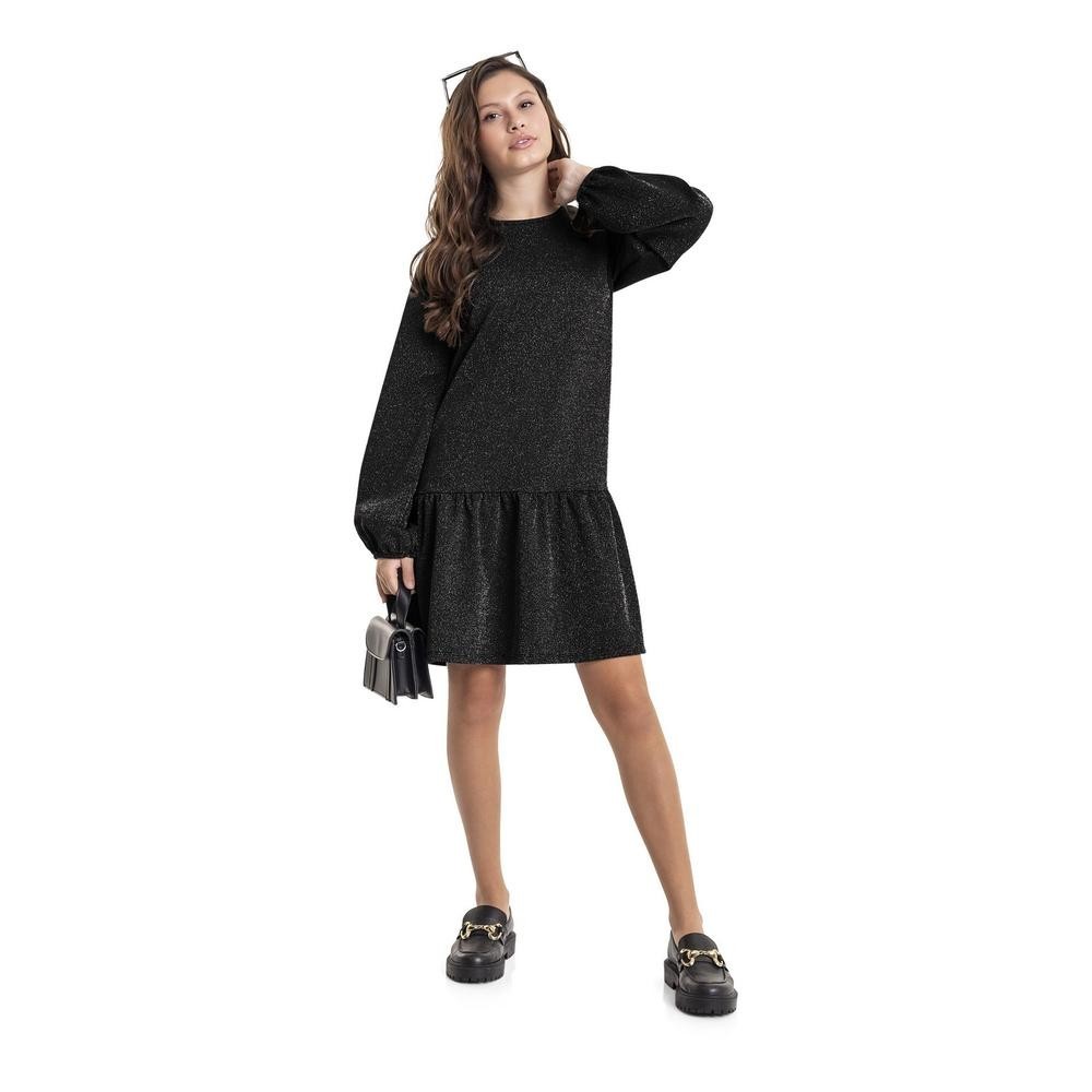 O vestido de manga longa juvenil confeccionado em malha texturizada com lurex, destaca-se como a opção ideal para enfrentar o inverno com estilo. O recorte franzido da peça não apenas adiciona movimento, mas também contribui para a modelagem perfeita do vestido. Além de contar com mangas bufantes que trazem toda uma elegância para o vestido. Esta peça é a escolha perfeita para criar looks sofisticados e repletos de personalidade, garantindo uma combinação impecável entre estilo e conforto.Tecido: LurexComposição: 94% Poliéster 3% Poliamida 3% ElastanoModelagem: AmplaComprimento Manga: LongaComprimento: CurtoForro: NãoDecote/Gola: Redondo