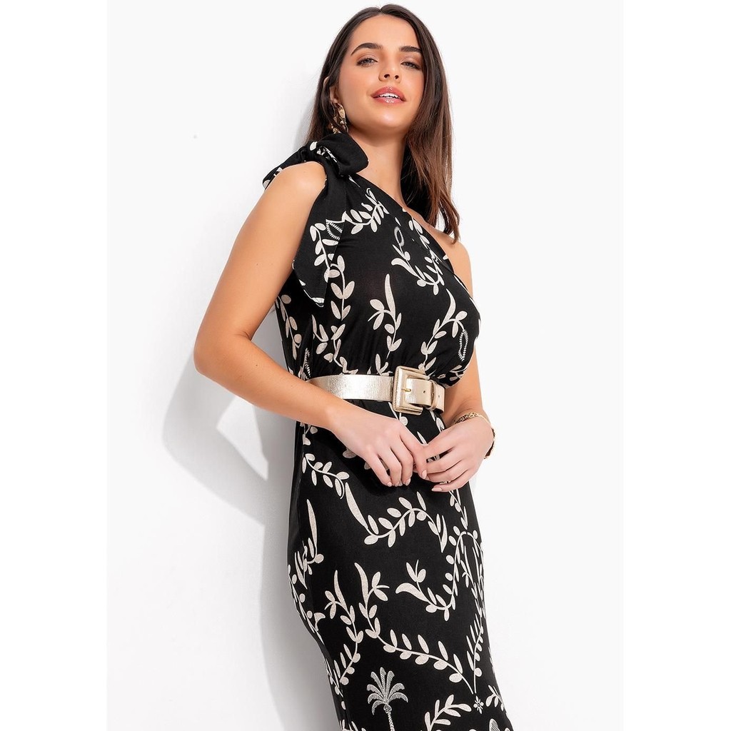 Este vestido apresenta um design de um ombro só com detalhe de laço na alça. Sua silhueta é justa, com elástico. O comprimento do vestido é midi. A estampa e o design de um ombro só tornam este vestido distintivo e visualmente marcante. Este produto é destinado apenas para consumidores finais (CPF). Não realizamos a venda para CNPJ.