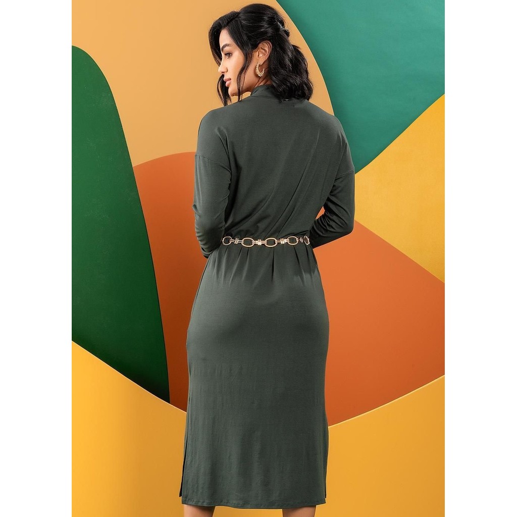 Vestido elegante e confortável! Feito de malha viscose com elastano, é perfeito para qualquer ocasião. Combine com um cinto estiloso e botas de estampa animal para um look moderno e sofisticado!