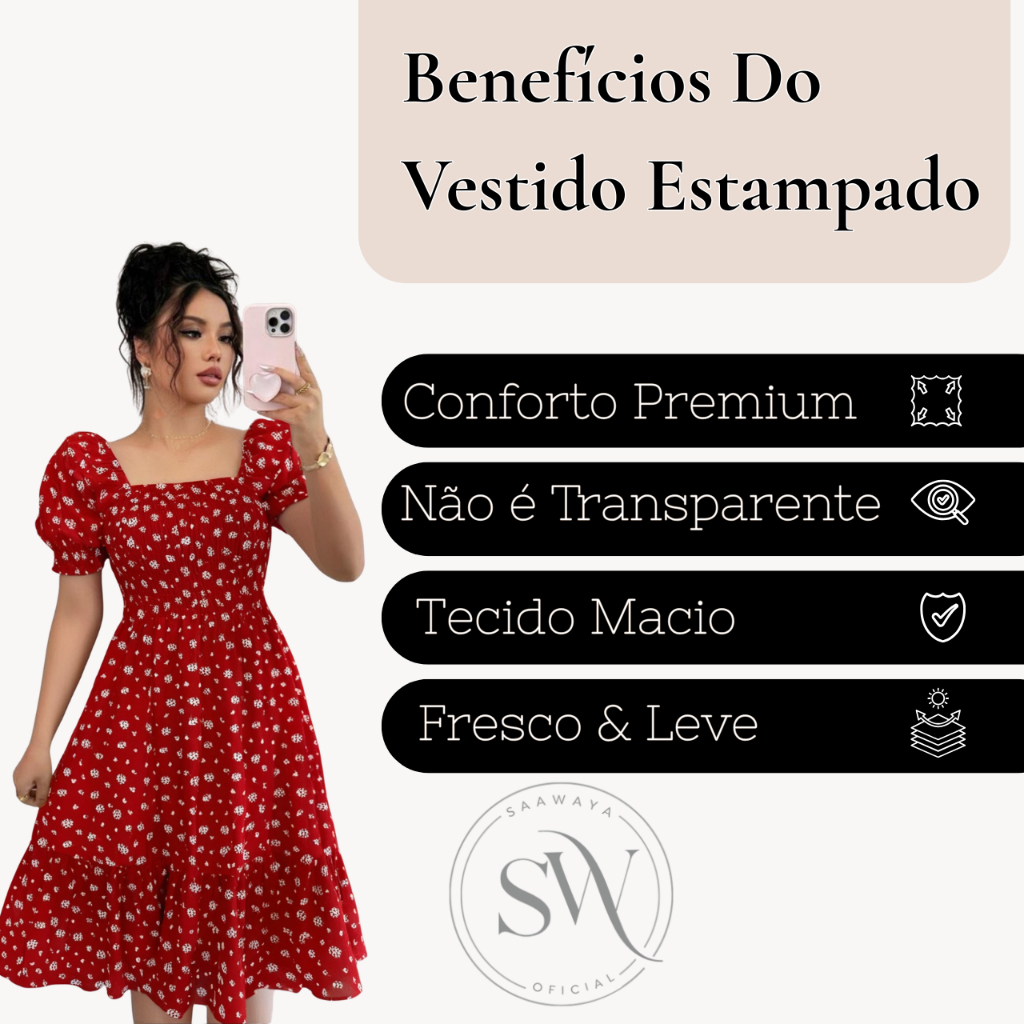 | Vestido Estampado Feminino Floral Elegante Ciganinha Camponesa Mang... este produto | R$ 63,99 | 42% | 4.8/5 | 11 |
