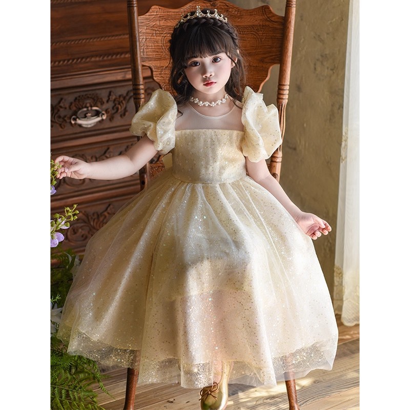 Vestido estilo princesa da selva para meninas, Vestido Glitter Rosa Mangas bufantes Godê De Festa Infantil