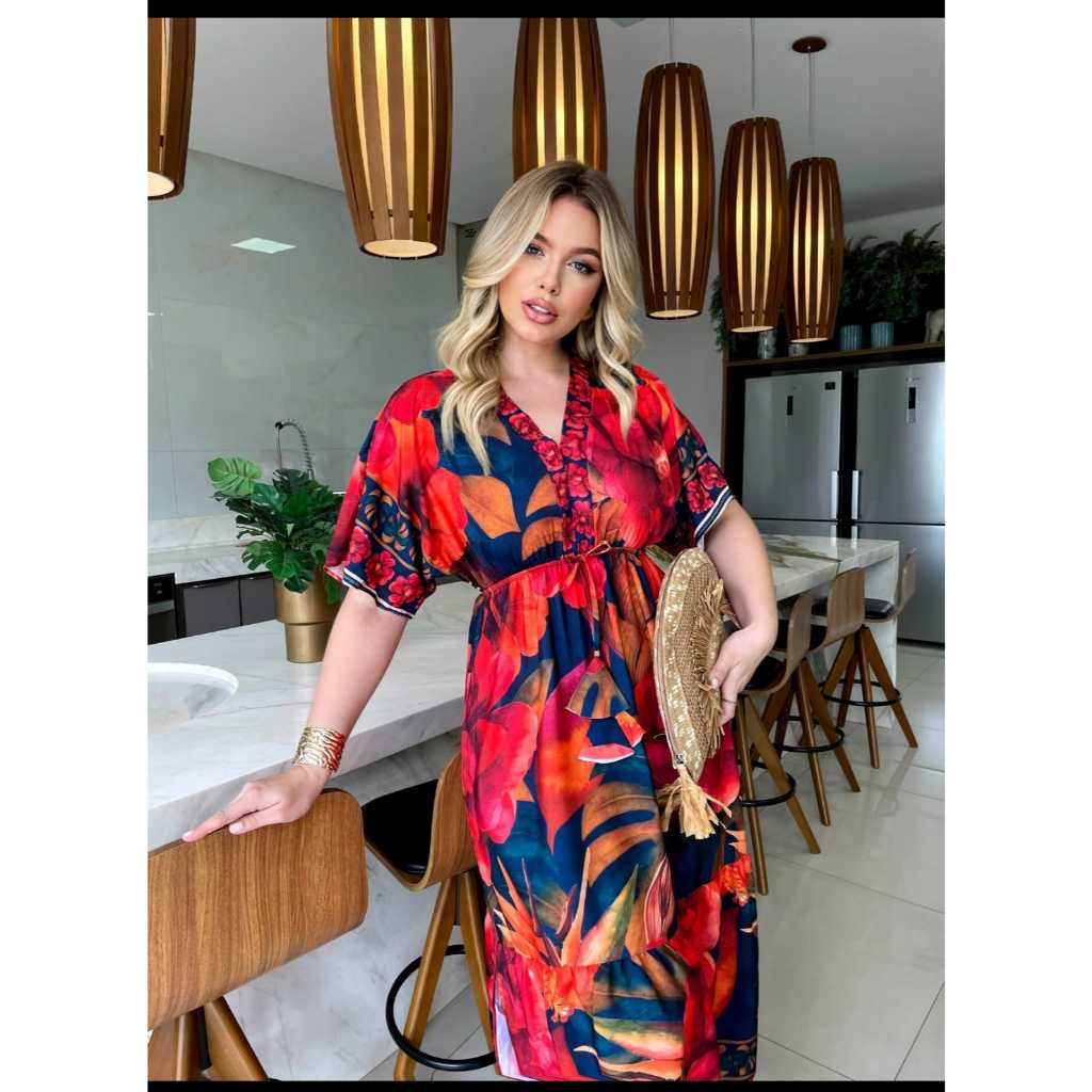 Vestido Femenina Manga Longa Estampa Exclusiva Tecido Crepinho Tamanho M veste 38 Tamanho G veste 40 ao 42 Tamanho GG veste 46 Comprimento 1.30 Largura na Cintura.54 cm Com Elastico Na Cintura Manga Morcego fresquinho e confortavel Uso dia e dia muito bom DESPACHAMOS NO MESMO DIA DUVIDA CHAME NO CHAT **&