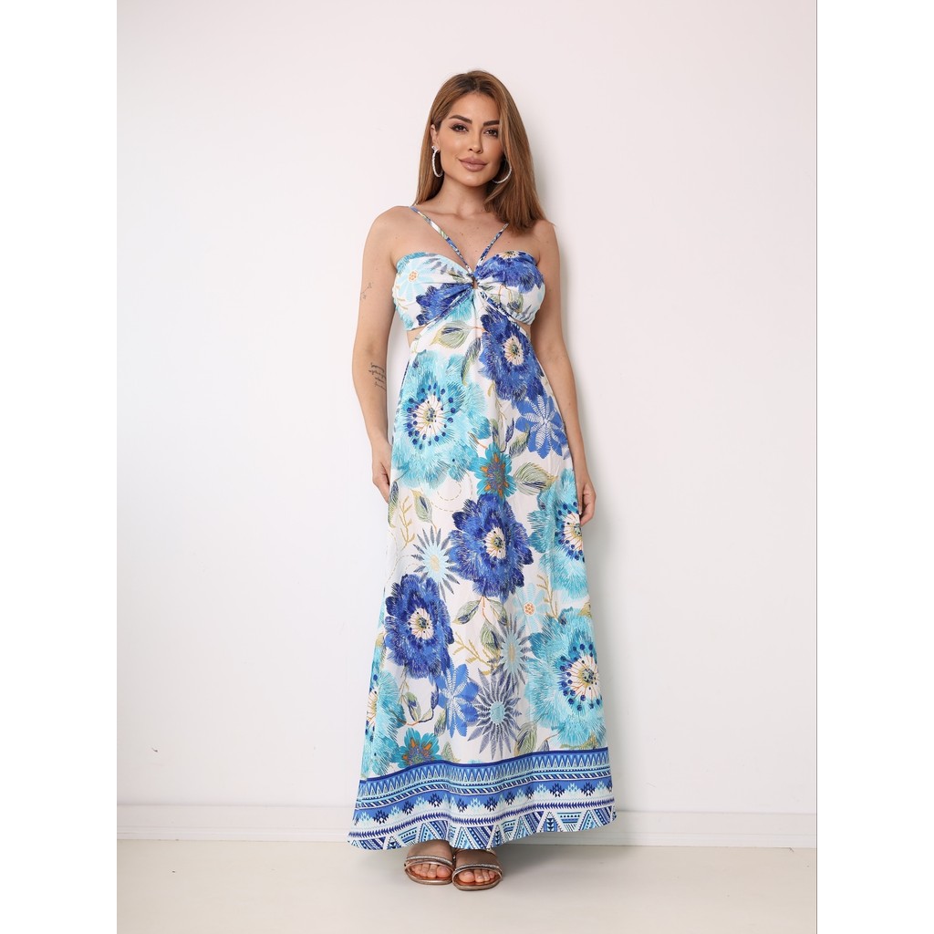 VESTIDO FEMININA LONGA SEM MANGA CINTURA ALTA