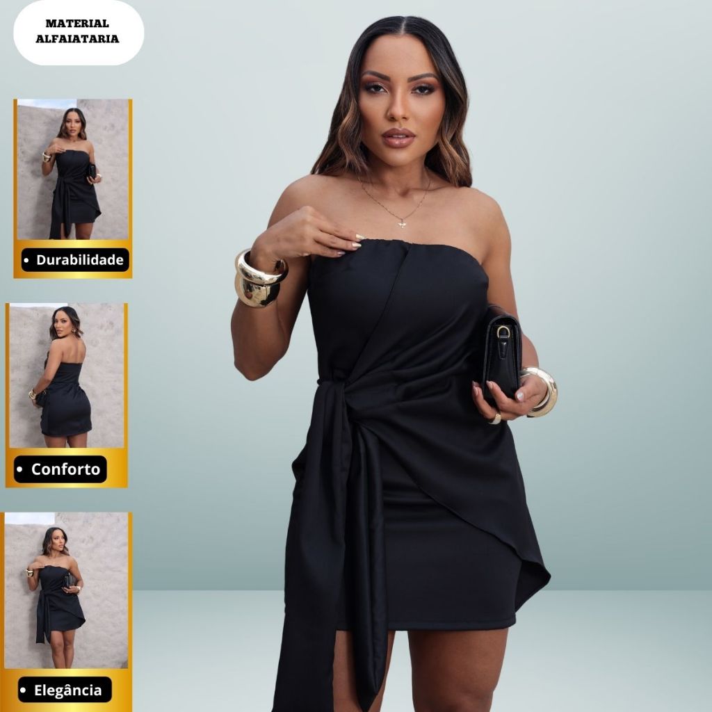Vestido Feminino Curto Alfaiataria Transpassado Tomara que caia Com Forro Verão 2026
