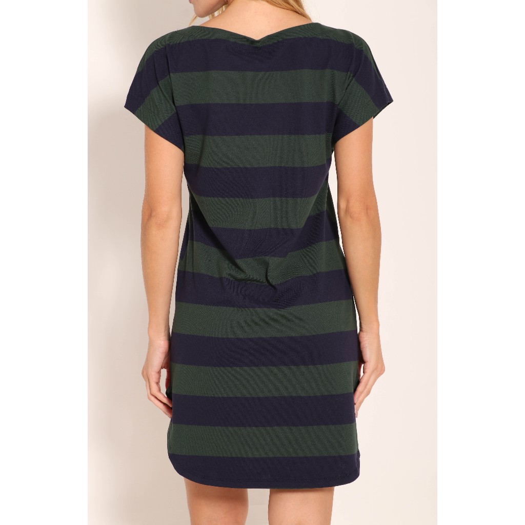 Vestido Feminino Curto Listrado Têndencia Blogueirinha Com Manga Curta Elegante Casual