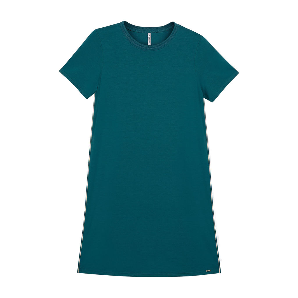 O Vestido Marialícia aposta em um visual despojado com um toque charmoso. Confeccionado em moletinho de viscose com elastano, ele possui comprimento midi, modelagem reta e mangas curtas, deixando o look mais confortável. O detalhe com filetes contrastantes nas laterais alongam a silhueta e trazem um estilo esportivo à peça. Perfeito para passeios, encontros casuais ou até um look comfy para o final de semana, combine com acessórios para completar o visual com personalidade!Modelo veste tamanho P. Medidas da modelo: 88cm de busto; 94cm de quadril; e 65cm de cintura.