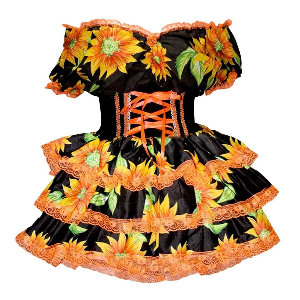 Vestido Feminino de Festa Junina Luxo Xadrez Super Rodado Acinturado Com Espartilho Tamanhos do 32 a 50