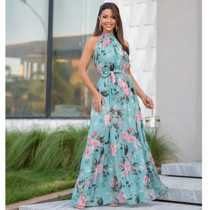 vestido feminino lindo longo Gola Alta estampas floral