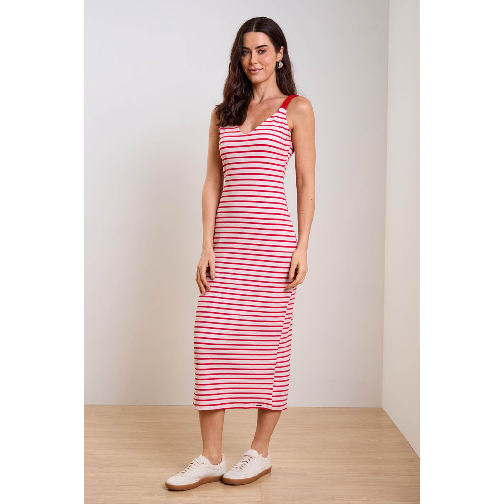Vestido Feminino Listrado Marialícia Vermelho