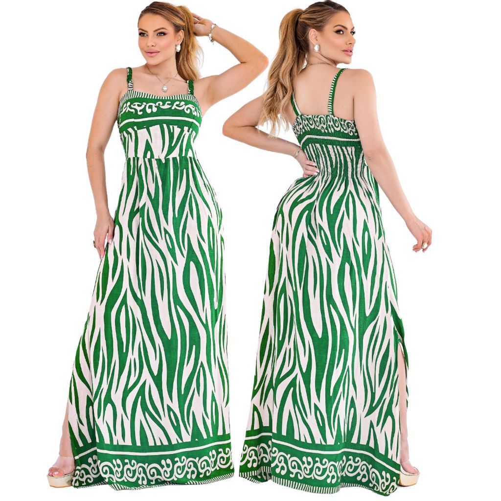 Vestido Feminino longo Animal Print Com Fenda lateral Com Bojo Elegância Valentina