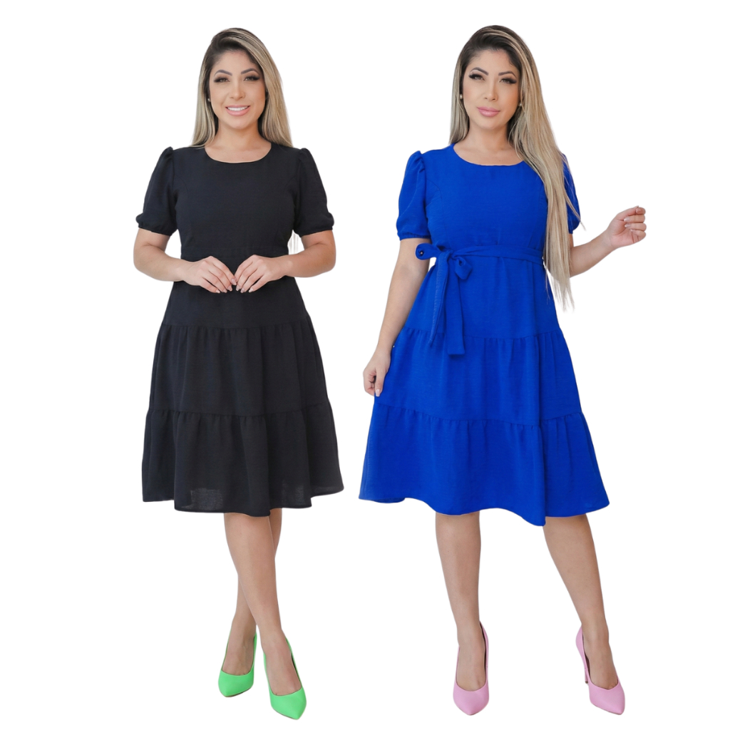 Vestido Midi Três Marias - Elegância e Conforto em Crepe Duna O Vestido Midi Três Marias é a escolha perfeita para quem busca um visual elegante, moderno e discreto. Com modelagem soltinha e mangas bufantes, ele une a sofisticação da moda evangélica com a praticidade do tecido Crepe Duna, garantindo um caimento impecável para diversas ocasiões. Diferenciais do Produto: Tecido Crepe Duna: Textura suave, fluida e de alta qualidade. Praticidade: Não amassa e dispensa o uso de ferro de passar. Conforto: Secagem rápida e excelente elasticidade. Design: Corte Três Marias (camadas) que proporciona movimento e leveza. Acabamento: Fabricação própria com rigoroso controle de qualidade. Guia de Tamanhos e Medidas: As peças não possuem bojo. Tamanho M (Veste 36 ao 38) Busto: 90 cm Cintura: 84 cm Quadril: 108 cm Comprimento: 100 cm Tamanho G (Veste 40 ao 42) Busto: 104 cm Cintura: 92 cm Quadril: 116 cm Comprimento: 104 cm Tamanho GG (Veste 44 ao 46) Busto: 110 cm Cintura: 100 cm Quadril: 120 cm Comprimento: 110 cm Informações de Envio e Compra: Envio Imediato: Pedidos realizados até as 15:30h são postados no mesmo dia. Logística: Pedidos feitos em finais de semana ou feriados são enviados no primeiro dia útil subsequente. Disponibilidade: Cores sujeitas a pequena variação de tom conforme o lote do tecido e produção. Atendimento ao Cliente: Estamos à disposição para tirar suas dúvidas através do chat da Shopee. Horário de atendimento: Segunda a Sexta-feira, das 08h às 18h.