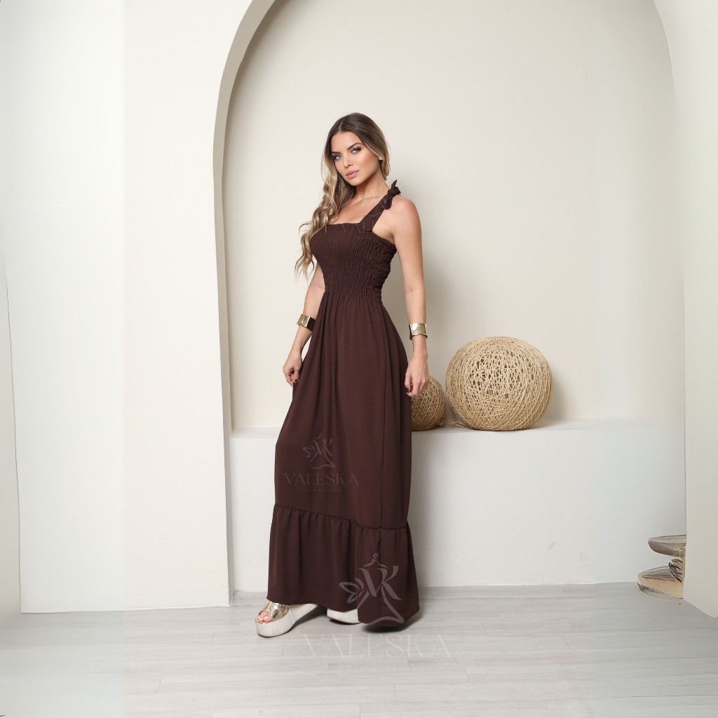 | Vestido Feminino longo MARROM CHOCOLATE com alças ajustáveis lastex... este produto | R$ 60,00 | 50% | 4.8/5 | 6 |