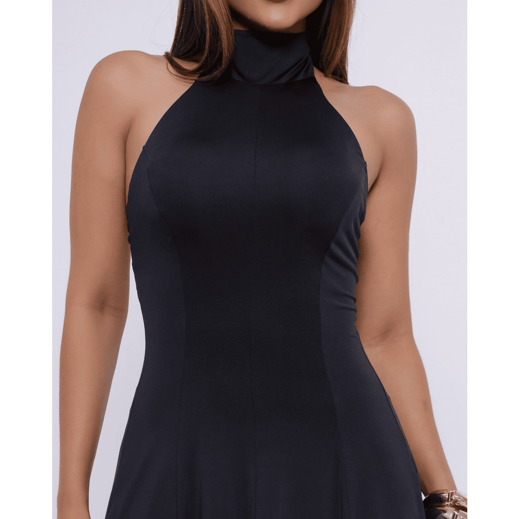 Vestido Feminino Longo Romantico Elegante Verão Gola Alta Costa Nua Sem Bojo Tipo Blogueira