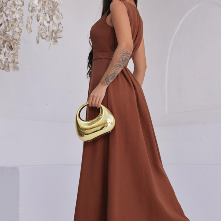 Vestido Feminino Longo Sem Mangas Com Amarração na Frente Rodado Festa Tendencia