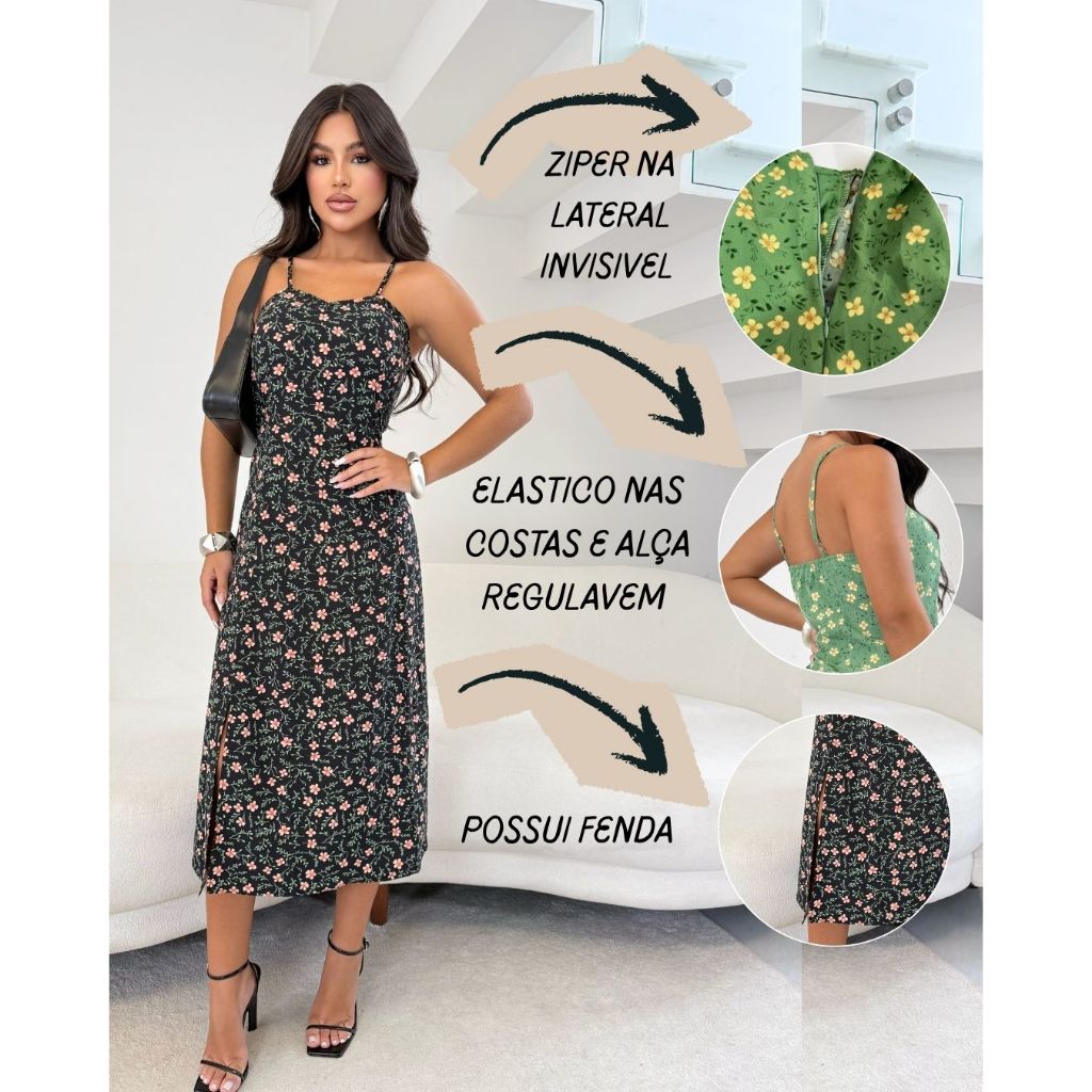 | Vestido Feminino Midi Floral Reguravel com Fenda Envio Imediato este produto | R$ 67,90 | 3% | 5.0/5 | 31 |