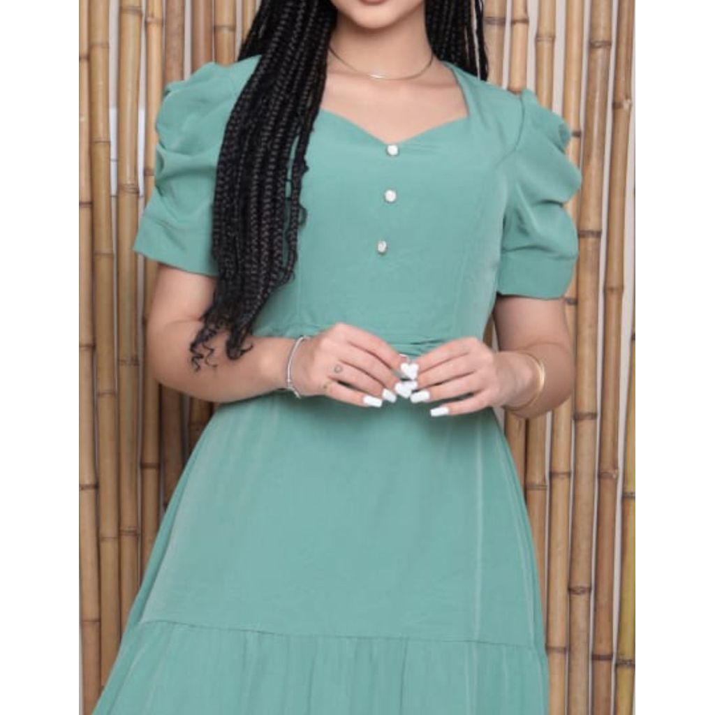 O Vestido Midi Feminino em Tecido Duna é a escolha ideal para quem busca elegância e conforto em uma única peça. Desenvolvido em tecido de alta qualidade, possui excelente caimento, toque macio e estrutura leve, que valorizam a silhueta de forma natural. Com gola coração, mangas Princesa estruturadas e botões decorativos no busto, esse modelo valoriza o colo e traz um toque delicado e sofisticado ao visual. A cintura marcada com detalhe em pregas realça a silhueta, enquanto a saia midi com recortes 3 marias amplo proporciona leveza e movimento ao andar. Combine seu vestido com saltos, colar, brincos, bolsas e arrase na estação mais quente do ano. + detalhes >Forrado >Tem elastano na parte de trás da cintura >Saia três marias >Manga princesa Tabela de tamanhos: P - Busto-92 cm l Cintura 94 cm l Quadril 110 cm l Comprimento 130 cm M - Busto 96 cm l Cintura 98 cm l Quadril 116 cm l Comprimento 131cm G - Busto-100 cm l Cintura 104 cm l Quadril 120 cm l Comprimento 132 cm GG - Busto- 106 cm l Cintura 110 cm l Quadril 126 cm l Comprimento 133 cm DÚVIDAS FREQUENTES: Os produtos são de qualidade? - Realizamos uma conferência em todos os produtos antes de enviar com o objetivo de enviar itens sem defeitos. E se eu desejar fazer a troca do produto recebido? - Nesse caso a plataforma não permite trocas. Aí é só fazer a devolução de forma gratuita dizendo que o “produto não serviu” ou “mudança de ideia”. !! ATENÇÃO PARA OS DADOS DE ENTREGA !! - Confira o seu endereço de entrega cadastrado, não alteramos endereços após a compra. Congresso/ Igreja/ Ceia/ Natal /Ano Novo/ Dia da Mulher/ Dia das Mães
