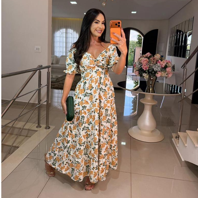 Vestido Feminino Midi Três Marias – Viscolinho Lindo vestido midi modelo Três Marias, perfeito para quem busca conforto, leveza e elegância. Seu design feminino valoriza a silhueta e garante um caimento impecável. 🔹 Detalhes do produto: Modelo Midi Três Marias Tecido viscolinho, leve e fresco Elástico nas costas, ajusta-se ao corpo Manga curta com elástico no punho Saia com forro, não fica transparente Caimento soltinho e confortável 👗 Ideal para o dia a dia, passeios, eventos casuais, primavera e verão. 💖 Um vestido versátil, moderno e indispensável no guarda-roupa feminino. Tamanho Único (Serve do 36 ao 42): - Contorno de peito: 85 cm a 100cm - Contorno de cintura: 65 cm a 95 cm - Contorno de quadril: 110cm a 120cm - Comprimento da peça: 125 cm - Medida da manga: 30 cm >>>>FABRICAÇÃO----PRÓPRIA<<<<<<