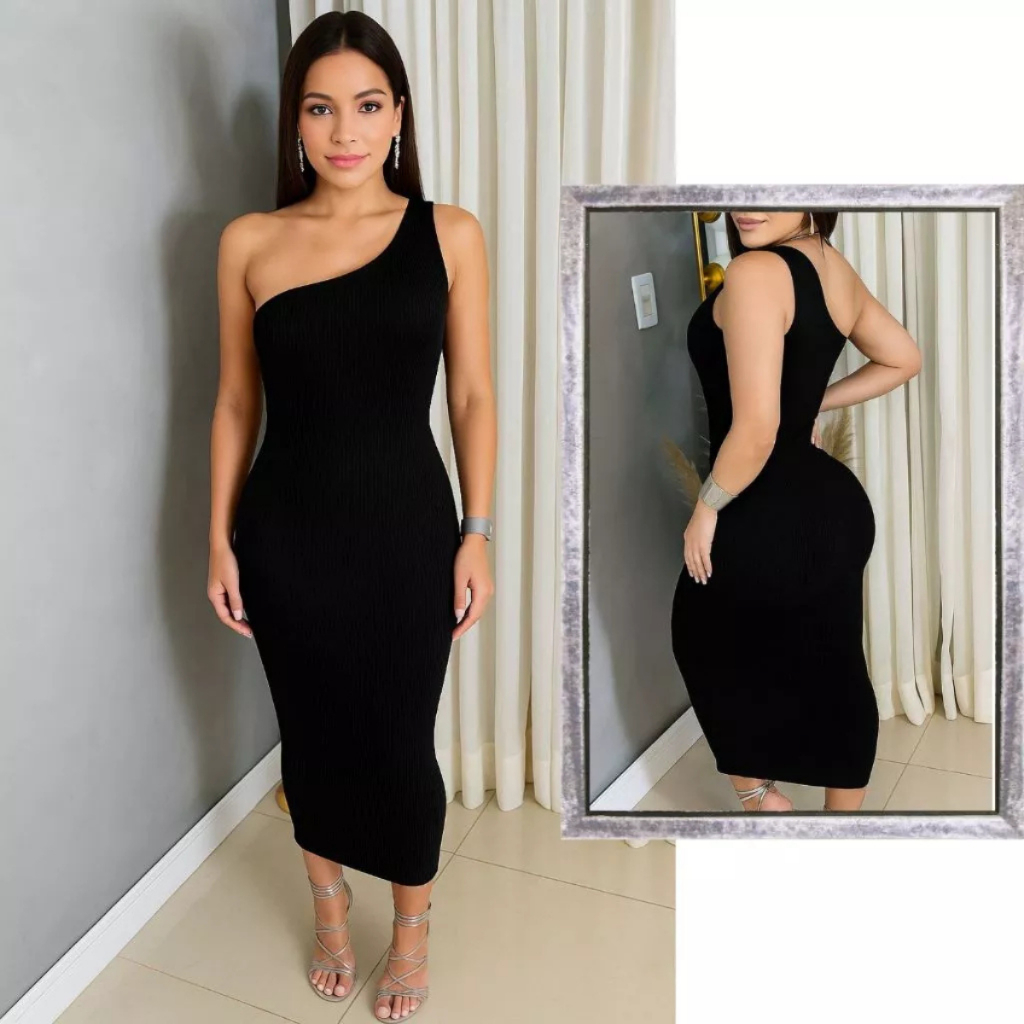 ✨ Vestido Midi Canelado Um Ombro Só – P ao GG ✨ O vestido perfeito para quem busca elegância, sensualidade e conforto em uma única peça. Com modelagem justa e tecido canelado, ele valoriza a silhueta e garante um caimento impecável. ✔️ Modelo: Midi ✔️ Decote: Um ombro só ✔️ Tecido: Canelado com ótima elasticidade ✔️ Caimento: Justo ao corpo ✔️ Comprimento: Midi ✔️ Estilo: Elegante e moderno Ideal para eventos noturnos, jantares, festas, aniversários ou até produções mais sofisticadas do dia a dia. Combina perfeitamente com salto alto, sandálias ou acessórios minimalistas. 📏 Tamanhos disponíveis: P M G GG