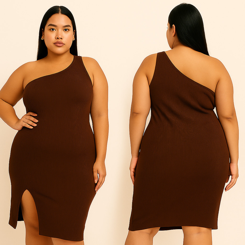 Vestido Feminino Plus Size Midi com Fenda Lateral Alça Regata Um Ombro Manga Nula Mula Manca O vestido canelado um ombro só é a escolha perfeita para quem busca um visual moderno e sofisticado. Feito em malha canelada com elastano, ele se ajusta perfeitamente ao corpo, valorizando as curvas com muito conforto. O recorte assimétrico e a fenda lateral trazem um toque de estilo e sensualidade na medida certa, ideal para ocasiões especiais, festas ou um jantar elegante. 💃 Detalhes do produto: Modelo: Um ombro só com fenda lateral Tecido: Malha canelada com elastano Comprimento: Midi Caimento justo e confortável Ideal para looks elegantes e modernos 📏 Tamanhos disponíveis: GG | G1 | G2 | G3 🎨 Cores disponíveis: Preto, Marsala, Marrom