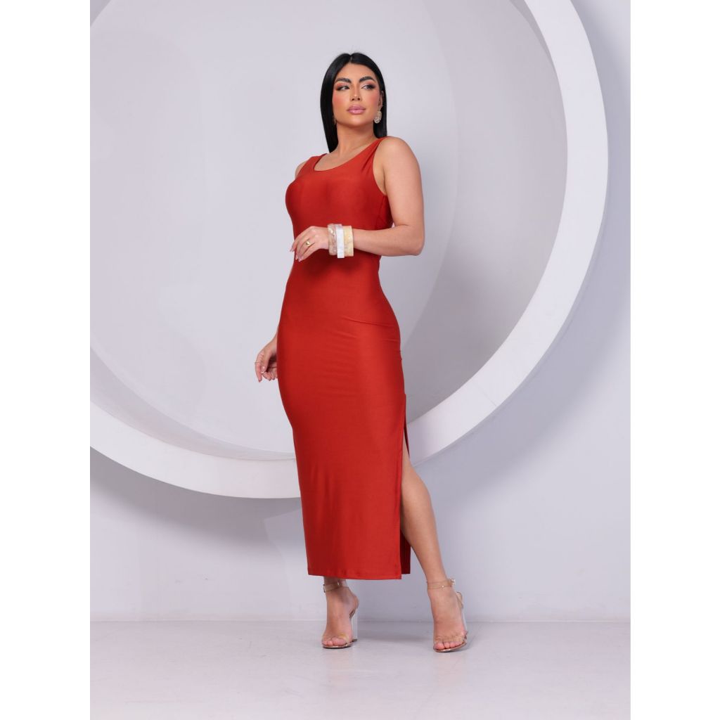 VESTIDO FEMININO MIDI REGATA FENDA LATERAL