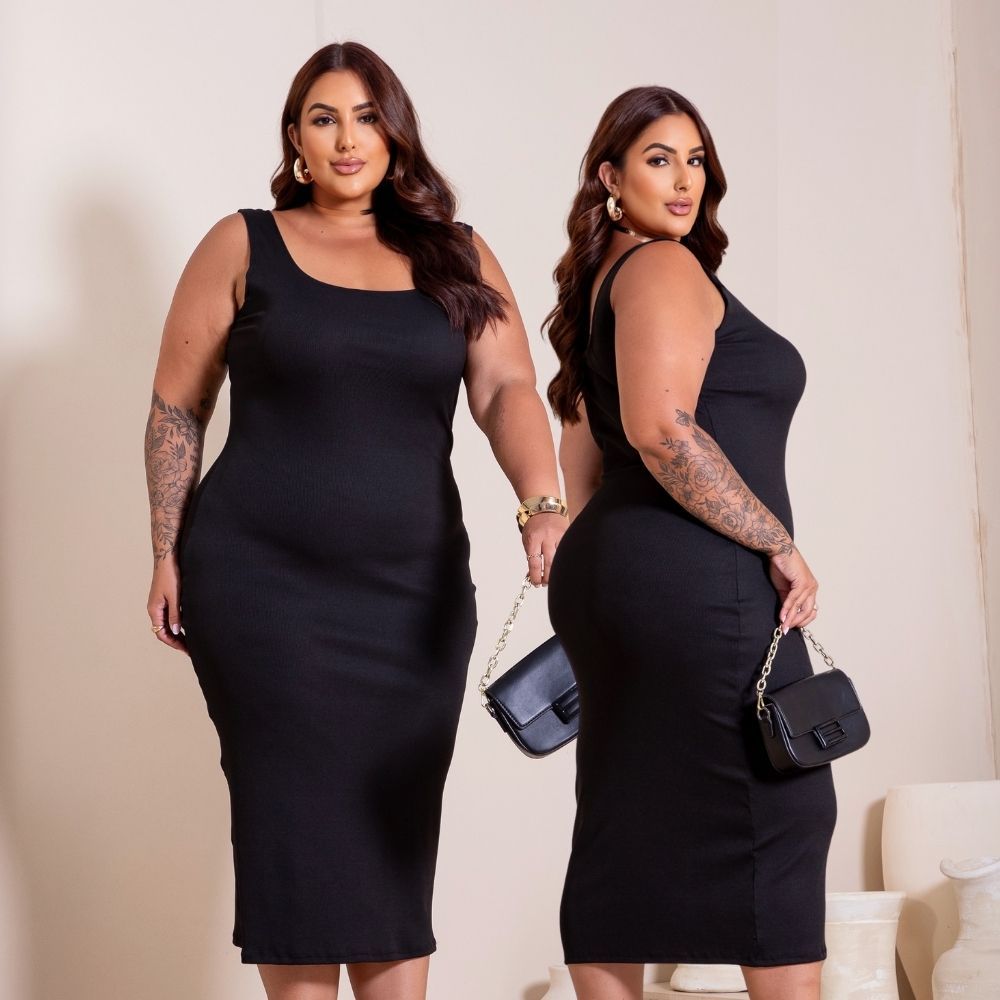 Vestido Feminino Plus Size Canelado Midi Alcinha Grossa com Elastano ideal para Verão