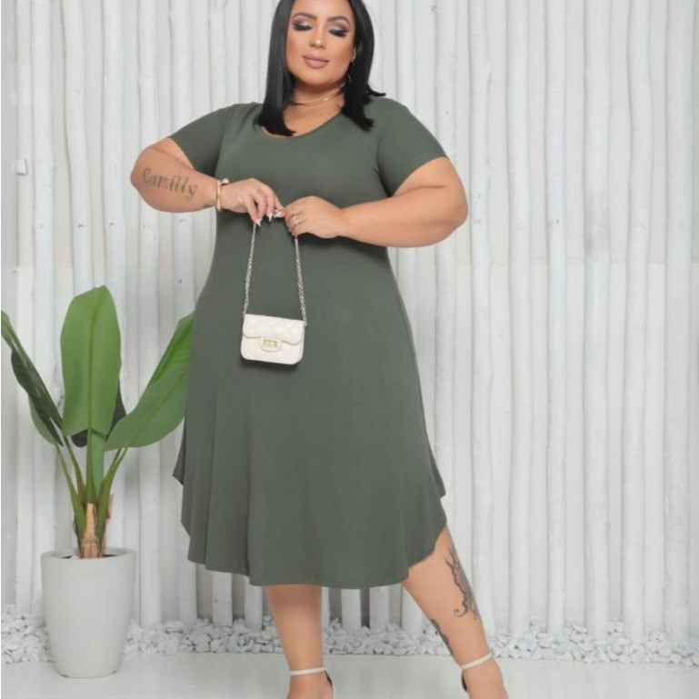 Vestido Midi Plus Size Com Manguinha Tamanho do 46 ao 52 Os Vestidos vestem comprovados os tamanho indicados no anúnico. Sobre o produto: Vestido plus size Modelo Midi com Manguinha Tecido em malha Viscolycra Veste do 46 ao 54/etiqueta interna no tamanho G2 Vestido versátil,combina com qualquer ocasião! ENVIO IMEDIATO