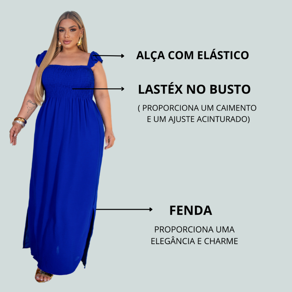 💃 Vestido Longo Plus Size Elegante com Alças e Fenda – Conforto e Estilo em Cada Detalhe! PODE SER USADO COMO TOMARA QUE CAIA<tirando a alça ou a colocando pra dentro. Encante com este vestido longo plus size que une elegância, leveza e caimento impecável! Com design moderno e feminino, ele é perfeito para valorizar suas curvas com muito conforto. ✨ Destaques do Produto: 👗 Modelagem Plus Size: desenhada especialmente para corpos reais, garantindo conforto e elegância. 💕 Lastex na parte de cima: se ajusta perfeitamente ao corpo, oferecendo sustentação e excelente vestibilidade. 🌸 Alças finas: toque delicado e charmoso, ideal para dias quentes e produções leves. 🔥 Fenda lateral: detalhe que traz sensualidade e movimento ao look. 🌿 Tecido leve e fluido: confortável, fresco e com ótimo caimento. 💫 Ocasiões: ideal para festas, casamentos, jantares, formaturas, passeios ou eventos ao ar livre. 📏 Veste do tamanho 48 ao 52 🎨 Cores disponíveis: Preto, verde bandeira, azul bic, rosa fúcsia, terracota e bege. 💖 Garanta o seu e sinta-se linda, elegante e confiante em qualquer ocasião!