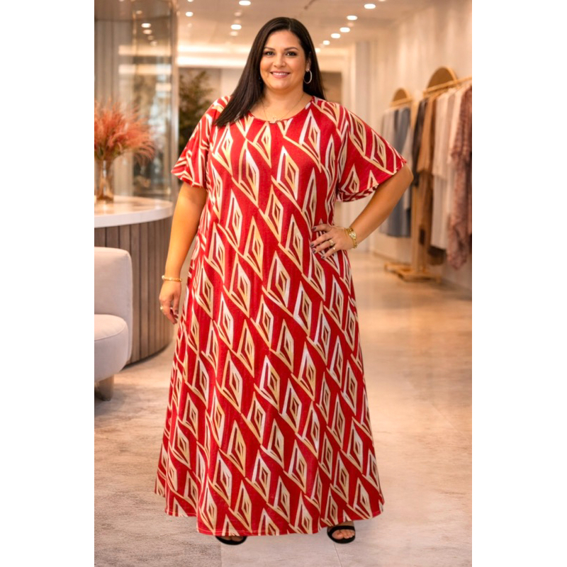 MALHA ROMANTIC ( POLIÉSTER COM ELASTANO) TOQUE MACIO E FLUIDO Se você procura um vestido que une beleza, caimento perfeito e praticidade, esse modelo é a escolha ideal! Desenvolvido especialmente para valorizar o corpo plus size, ele possui modelagem soltinha que veste com conforto e elegância, garantindo liberdade de movimentos sem marcar. 👗 Modelagem e Design • Vestido longo com comprimento até os pés • Mangas flare que trazem leveza e sofisticação ao visual • Corte funcional e confortável, ideal para uso diário ou ocasiões especiais • Caimento soltinho que valoriza a silhueta sem apertar 🧵 Tecido e Qualidade • Malha com bastante elastano – maior flexibilidade e ajuste ao corpo • Não amassa: perfeito para quem busca praticidade • Não desbota: cores e estampas vibrantes por muito mais tempo • Toque macio e confortável na pele 📏 Tamanho e Vestibilidade • Veste do plus size até aproximadamente o tamanho 54 • Modelagem pensada para oferecer conforto e mobilidade 🌷 Versatilidade Ideal para compromissos do dia a dia, trabalho, igreja, passeios e eventos casuais. Combine com sandália de salto para um look elegante ou rasteira para um visual mais leve. 💖 Um vestido funcional, estiloso e confortável — feito para mulheres que querem se sentir lindas em qualquer ocasião!