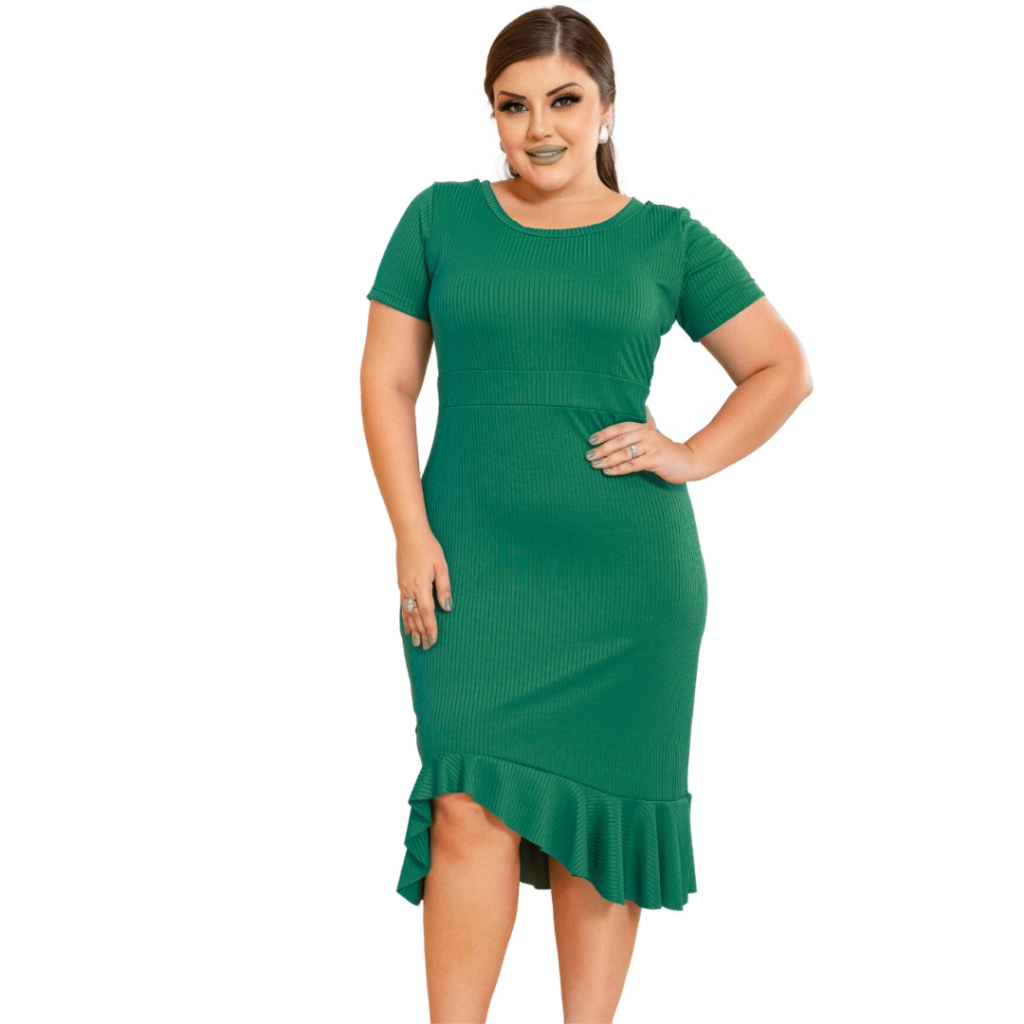Vestido Feminino Plus Size Manga Curta solto e babado canelado e elastano da moda com manga lisa moda feminina casual