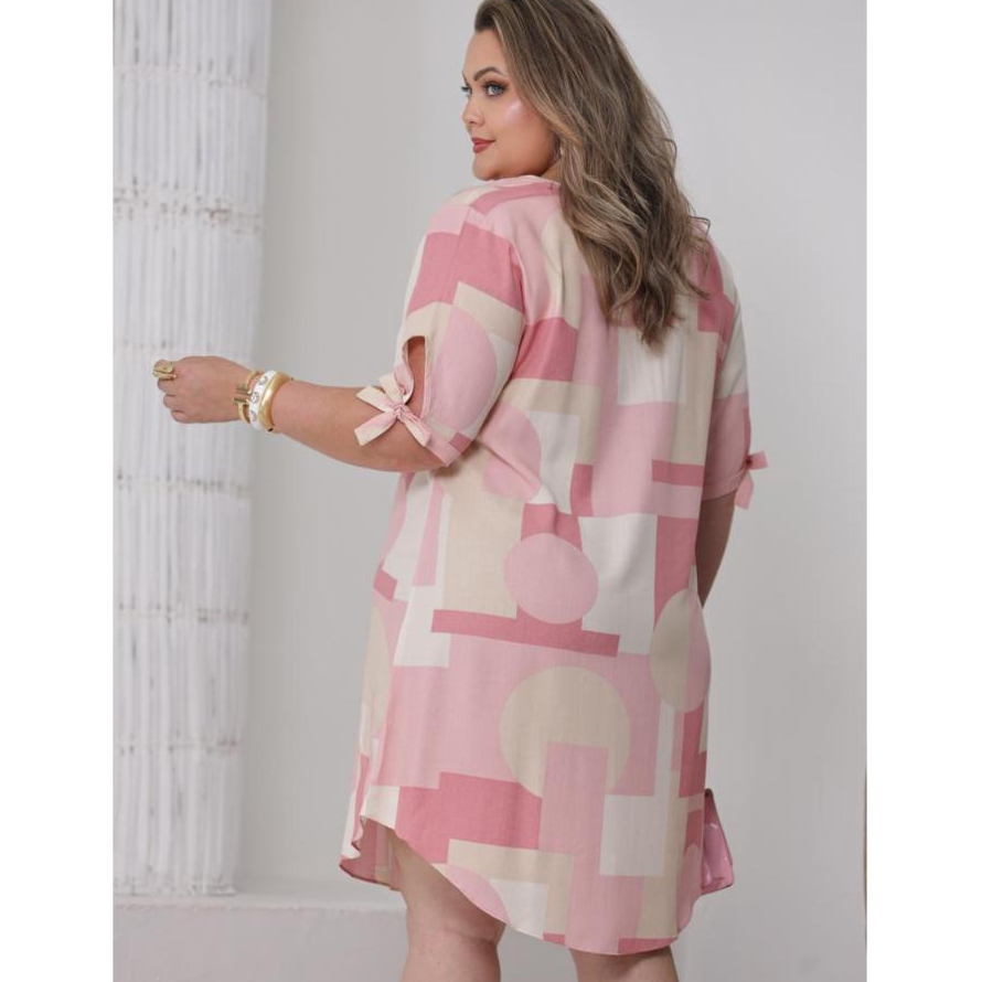 Vestido Feminino Plus Size Viscolinho Com Amarração Na Manga Elegante Social Soltinho Envio Imediato