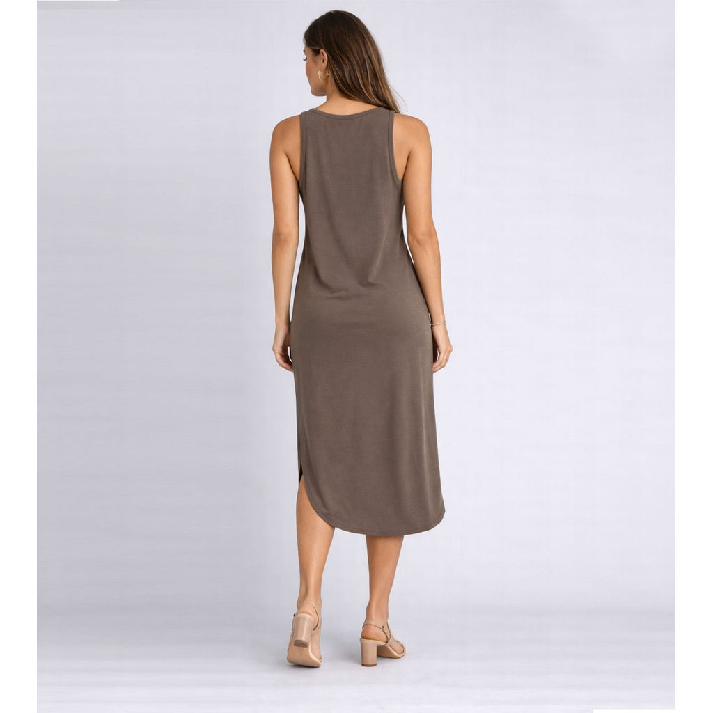 Vestido Feminino Regata Midi Com Fenda Good Bless Marrom