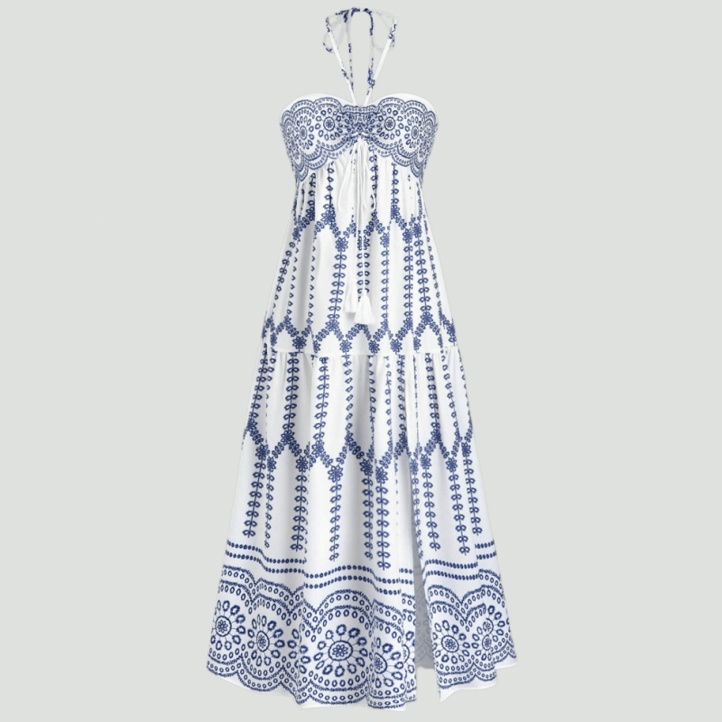Vestido Feminino Sem Manga para Férias na Praia Finas Estilo Boêmio Longo Mulheres com Alças