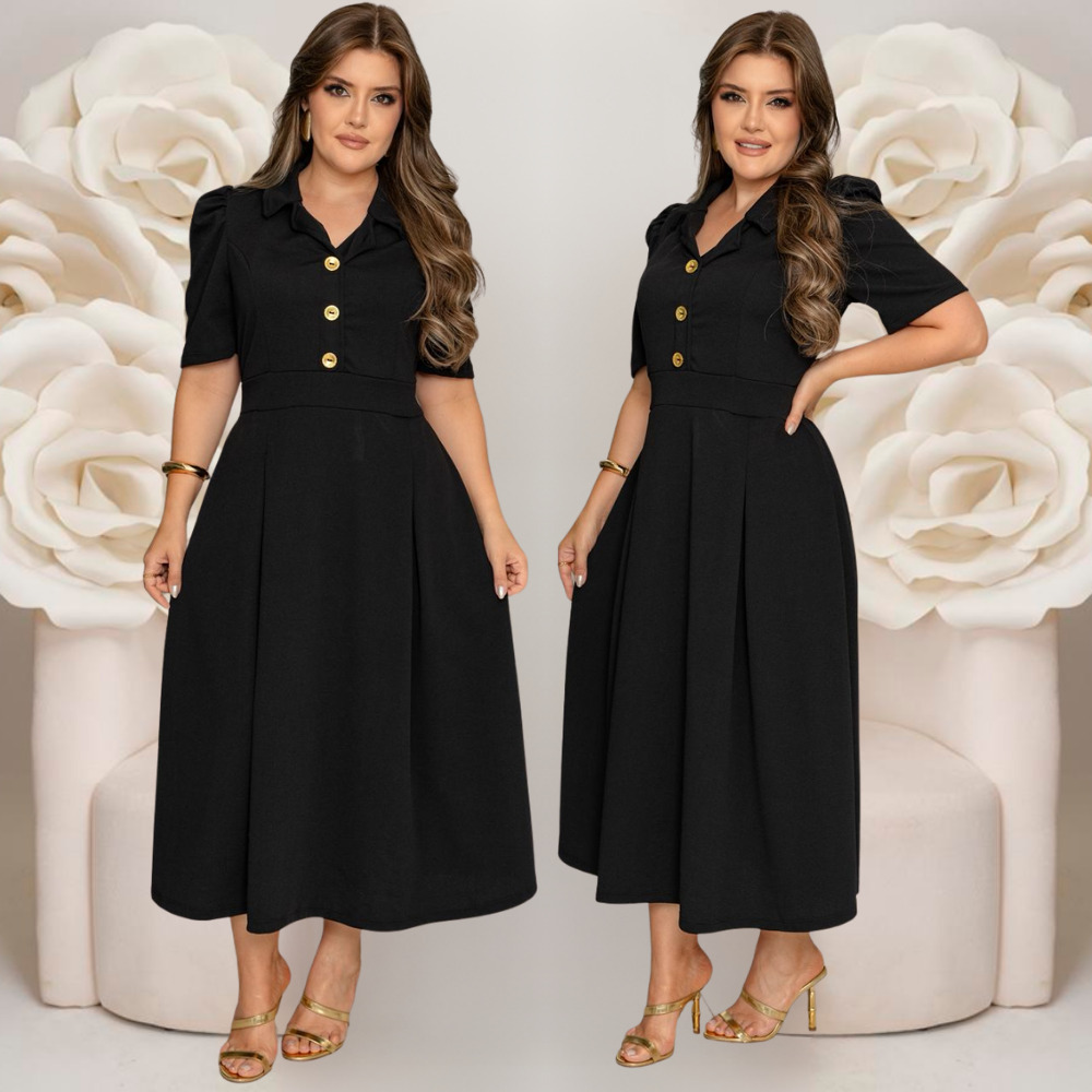 Vestido Feminino Social Manga Curta Com Botões Rodado Moda Evangelica Plus Size Fardamentos