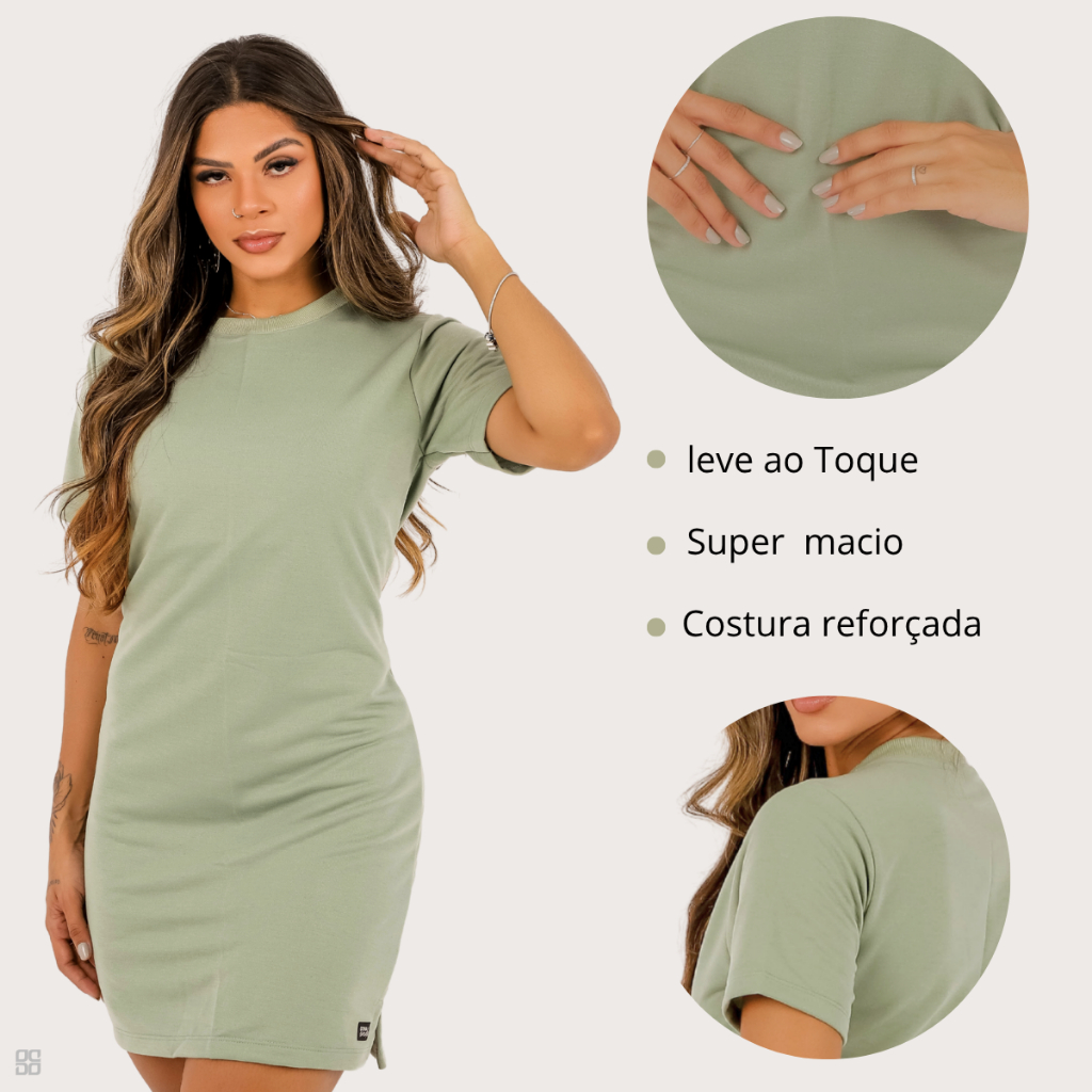 🌿 Vestido T-Shirt Cotton Fresh: O Equilíbrio Perfeito entre Conforto e Estilo! Sabe aquela peça que você mal tira do varal e já quer usar de novo? Apresentamos o nosso Vestido T-Shirt Slim, na cor verde sálvia — a tendência que une a leveza da natureza com a sofisticação do corte minimalista. Este não é apenas um "vestido básico". Ele foi desenhado para a mulher moderna que não tem tempo a perder, mas que não abre mão de estar impecável do café da manhã ao happy hour. ✨ Por que você vai se apaixonar? Toque de Nuvem: Confeccionado em malha premium com alta gramatura, ele oferece um toque macio na pele e, o mais importante: zero transparência. Modelagem Inteligente: O corte levemente acinturado valoriza suas curvas de forma discreta, sem marcar o que não deve e garantindo total liberdade de movimento. Cor Atemporal: O verde sálvia (verde menta fechado) é a cor da estação. Transmite calma, frescor e combina com todos os tons de pele. Durabilidade Real: Gola redonda com acabamento em ribana que não esgarça e costuras reforçadas para acompanhar o seu ritmo. 👠 Um Vestido, Mil Possibilidades Look Urban: Combine com tênis branco e uma jaqueta jeans amarrada na cintura para um visual "blogueirinha". Look Office: Com um blazer e um sapato baixo (flat), você está pronta para o trabalho com conforto total. Look Night: Aposte em um acessório dourado e um salto para elevar o nível da produção instantaneamente. 📝 Especificações Técnicas Tecido: [ Moletinho Tecido de Poliéster ] Composição: [ 100% Poliéster ] Transparência: Não. Encolhimento: Não encolhe após a lavagem (seguindo as instruções). 📦 O que você recebe na sua casa: 01 Vestido T-Shirt conforme a foto/vídeo. Dúvidas? Estamos à disposição no chat! Respondemos rapidinho para que você tenha a melhor experiência de compra. Clique em "Comprar Agora" e garanta essa peça indispensável no seu closet!