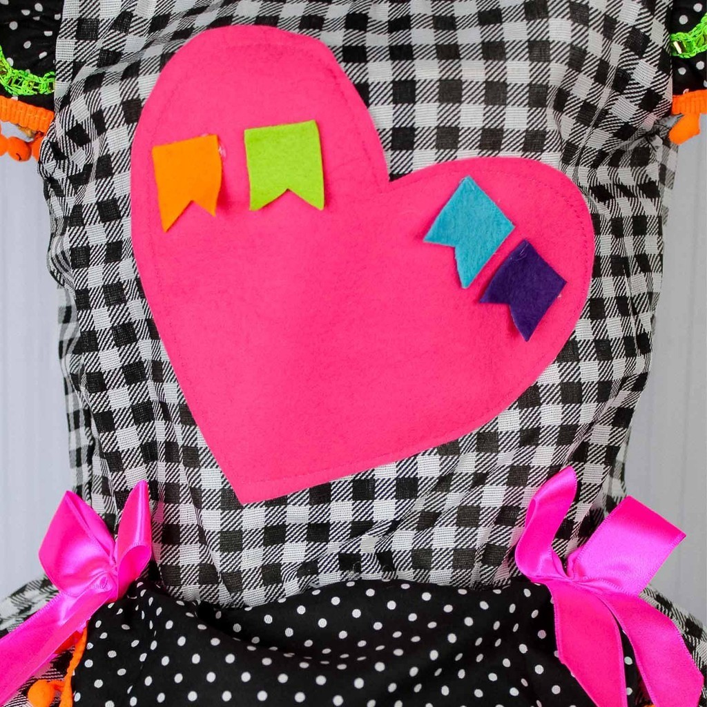 Itens inclusos: 1 vestido Tamanhos: P - Numeração de roupa 2 a 3, Medidas Detalhadas (Busto x Cintura):56 cm x 56 cm. M - Numeração de roupa 4 a 6, Medidas Detalhadas (Busto x Cintura):61 cm x 58 cm. G - Numeração de roupa 7 a 9, Medidas Detalhadas (Busto x Cintura):66 cm x 60 cm. GG- Numeração de roupa 10 a 12,Medidas Detalhadas (Busto x Cintura):75 cm x 64 cm. Ficou na dúvida de qual tamanho escolher? Sempre indicamos a escolha de um tamanho maior pois é mais fácil fazer um ajuste, caso necessário. E por ser para criança, a fantasia irá durar por mais tempo conforme ela for crescendo. Especificações Técnicas Material: Poliéster Produto: Fantasia nova, na embalagem. Cor: Preto Produto a pronta entrega! Prepare sua princesa para a festa junina mais encantadora com nosso vestido de festa junina infantil caipirinha neon! Este traje maravilhoso é perfeito para a comemoração de São João!Com as costas ajustáveis, é garantido que o vestido ficará perfeito no corpinho da sua princesa. E as mangas? elas são uma verdadeira explosão de cores e bordados! São super decoradas.E que tal o babado que envolve todo o vestido? É pura delicadeza e movimento, trazendo um charme especial para os passinhos de quadrilha. Além disso, a cintura é decorada com laços lindos.A saia é simplesmente um sonho! Bem redonda, ela tem uma fita metalizada deslumbrante. E não podemos esquecer do tule rosa por dentro, que dá um toque de suavidade e torna o visual ainda mais encantador.No busto, temos um adorável desenho de coração, todo adornado com bandeirinhas coloridas. Então, garanta o traje mais encantador da festa e deixe sua caipirinha arrasar na pista de dança! Não perca tempo e adquira já essa maravilha caipira para sua princesa brilhar no São João!