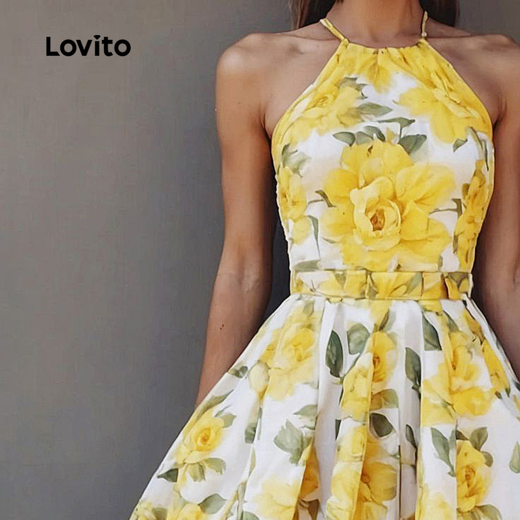 Vestido Floral frente única com cadarço e cintura estreita grande-DRB150P2D477