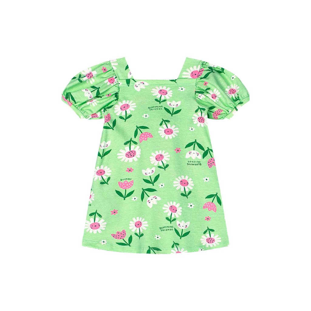 Vestido para bebê menina confeccionado em cotton light, garantindo conforto e flexibilidade para o dia a dia. Com estampa exclusiva de margaridas e morangos, traz um visual alegre e primaveril. Possui pala dupla embutida, franzido total na cintura e mangas bufantes com acabamento delicado, que proporcionam charme e liberdade de movimentos.Tecido: CottonComposição: 96% Algodão e 4% ElastanoModelagem: JustaComprimento Mangas: CurtaComprimento: CurtoForro: NãoDecote/Gola: QuadradoInformações Extras: Possui estampa de flores