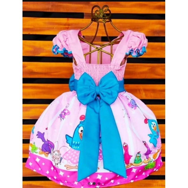 Vestido Galinha Pintadinha Rosa Bufante temático super luxo.