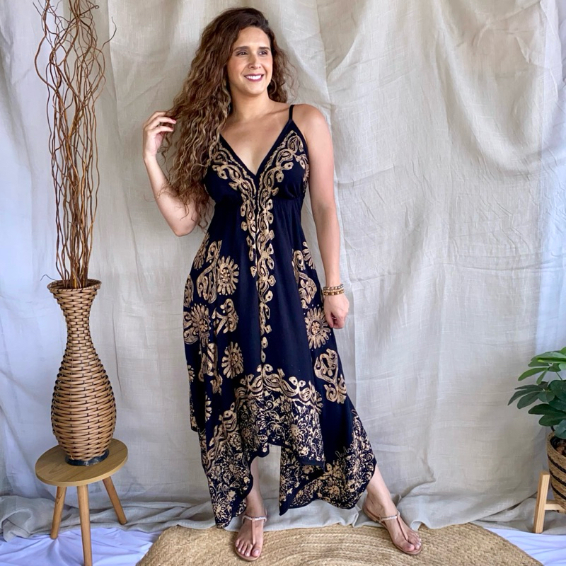 Zendaya = Agradecer Qualidade e muita energia positiva em cada peça. O vestido ponta valoriza as curvas do corpo da mulher e se adapta a diversos tamanhos de manequim, oferecendo conforto e deixando-as lindas e elegantes. Esse modelo pode ser usado no dia a dia, trabalho, eventos, passeios, festas e ocasiões especiais. Possui fivela para ajuste nas alças, lastex em todas as costas e também embaixo no seio. Vestido Bordado e Estampado. Tamanho único - Veste até manequim do 38 ao 44. O lastex nas costas e o elástico embaixo do seio deixa o corpo bem modelado e também bem confortável. Produto Importado - Fabricado na Índia. Tecido: 100% viscose A modelo da foto tem 1,73 de altura. Se ainda tiver dúvidas, mande uma mensagem pra gente! - Produto artesanal: Todo o processo de confecção das peças Indianas são feitas manualmente, portanto, por ser um processo artesanal as peças podem apresentar pequenas alterações nas estampas/cores/ bordados, tornando assim cada peça única e exclusiva. Antes de finalizar a compra, você pode tirar todas as suas duvidas conosco. As cores podem sofrer variação de acordo com a configuração de sua tela. - Lavagem: Para conservar a sua peça por mais tempo, recomendamos que a lavagem seja feita a mão com sabão neutro, secar a sombra, passar com cuidado. Não lavar na máquina de lavar, nao usar alvejante e não centrifugar, pois se trata de peças artesanais e delicadas. Produto requer maior cuidado nas lavagens, nao realizamos troca por mal manuseio da mercadoria. A Zendaya deseja a você muita positividade, paz e luz em seu caminho! Namastê Day Ferrêira