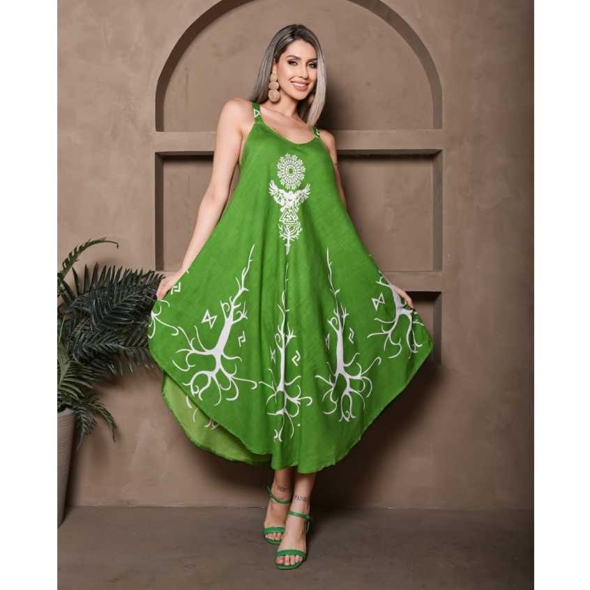 Para quem ama uma peça no estilo indiano e moda alternativa. Esse modelo de vestido, conhecido como trapézio, possui leveza e conforto, sem deixar de lado o estilo único com suas combinações de cores vibrantes! Uma peça super versátil, que pode ser usada em vários momentos, desde o casual, lazer e trabalho. Fabricados em tecidos leves, para proporcionar o conforto e frescor no corpo. Este vestido é também uma opção confortável e estilosa para gestantes durante e após a gestação. INFORMAÇÕES: Tecido: Viscose Numeração: M ao EG com regulagem na alça (alça de metal) Fabricação: Índia