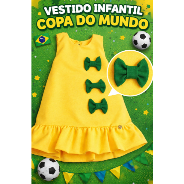 | Vestido Infantil Copa do Mundo Brasil Verde e Amarelo com Laços – R... este produto | R$ 39,95 | 50% | 5.0/5 | — |